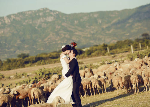 Ảnh cưới ấn tượng với đàn cừu của cặp đôi Việt – Hàn