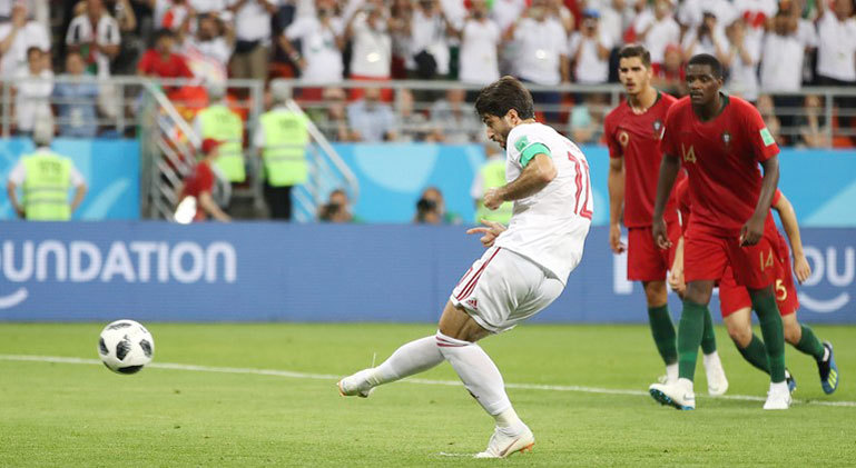 Karim ghi bàn trên chấm 11m phút bù giờ giúp Iran giành lại một điểm từ tay Bồ Đào Nha, sau khi Quaresma lập siêu phẩm bàn thắng cuối hiệp 1.