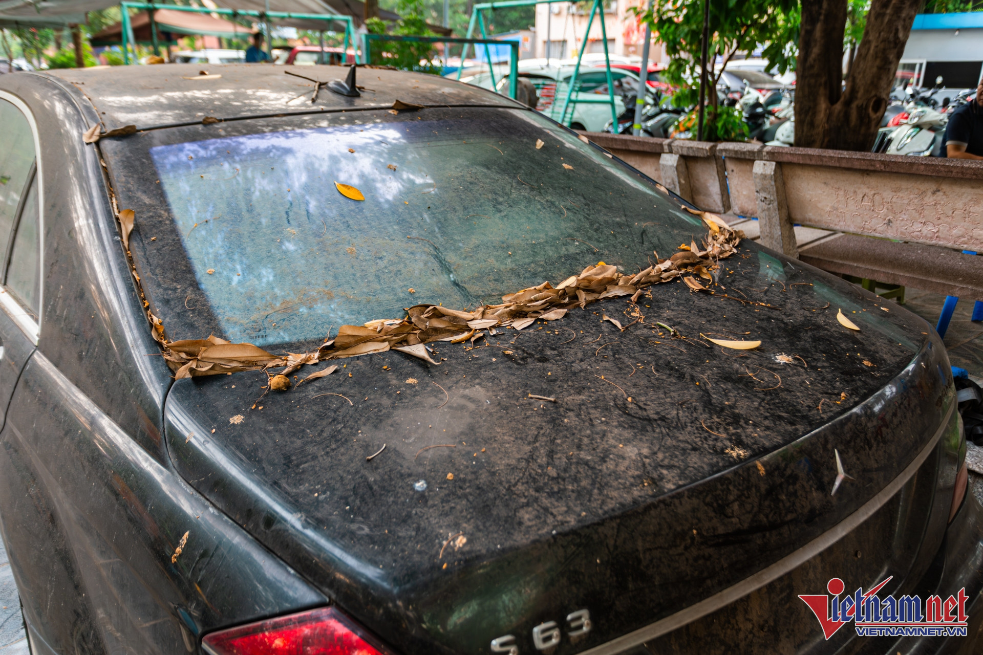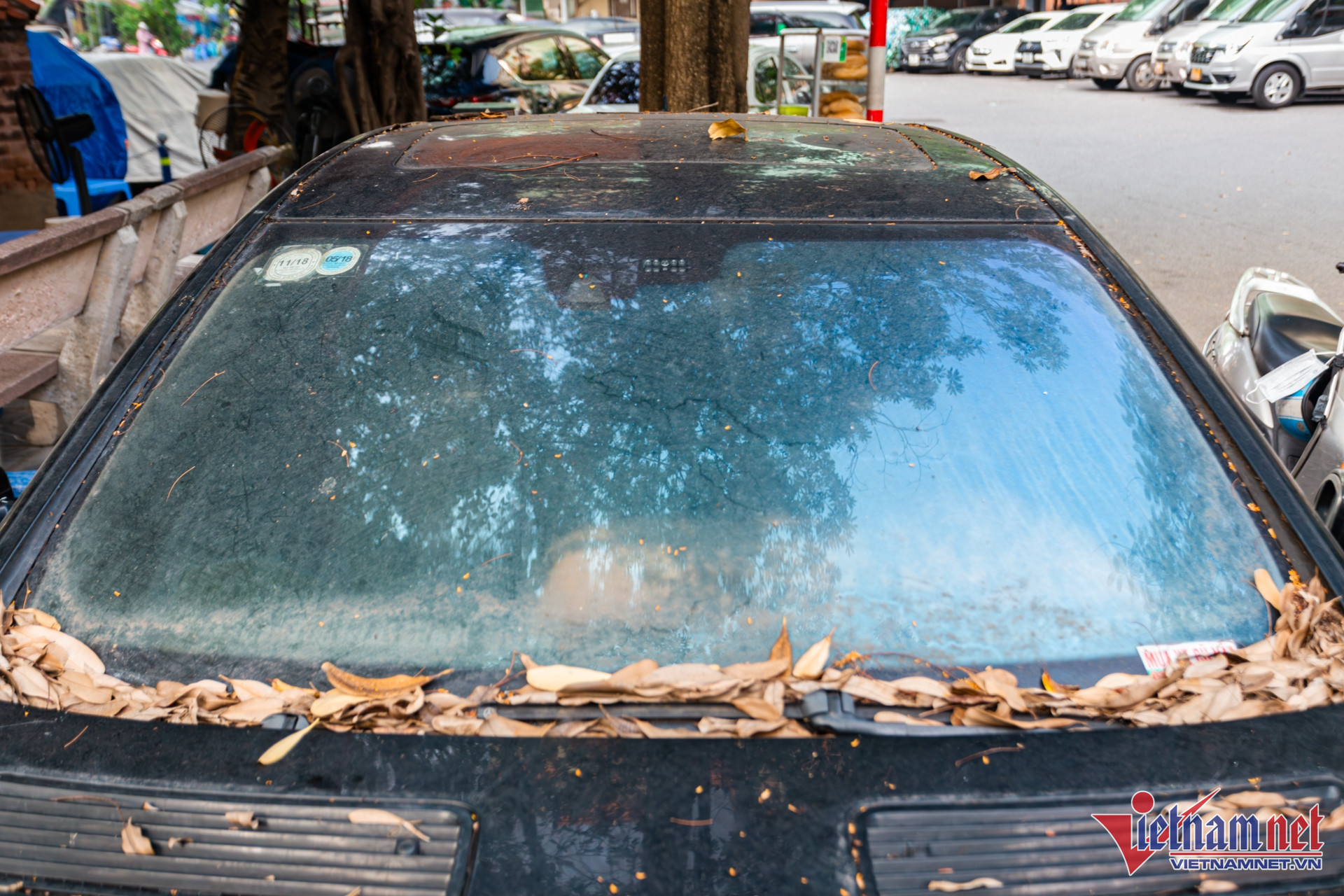 Lá cây rụng sót lại trên chiếc Mercedes đã rất lâu nhưng không có người dọn dẹp.