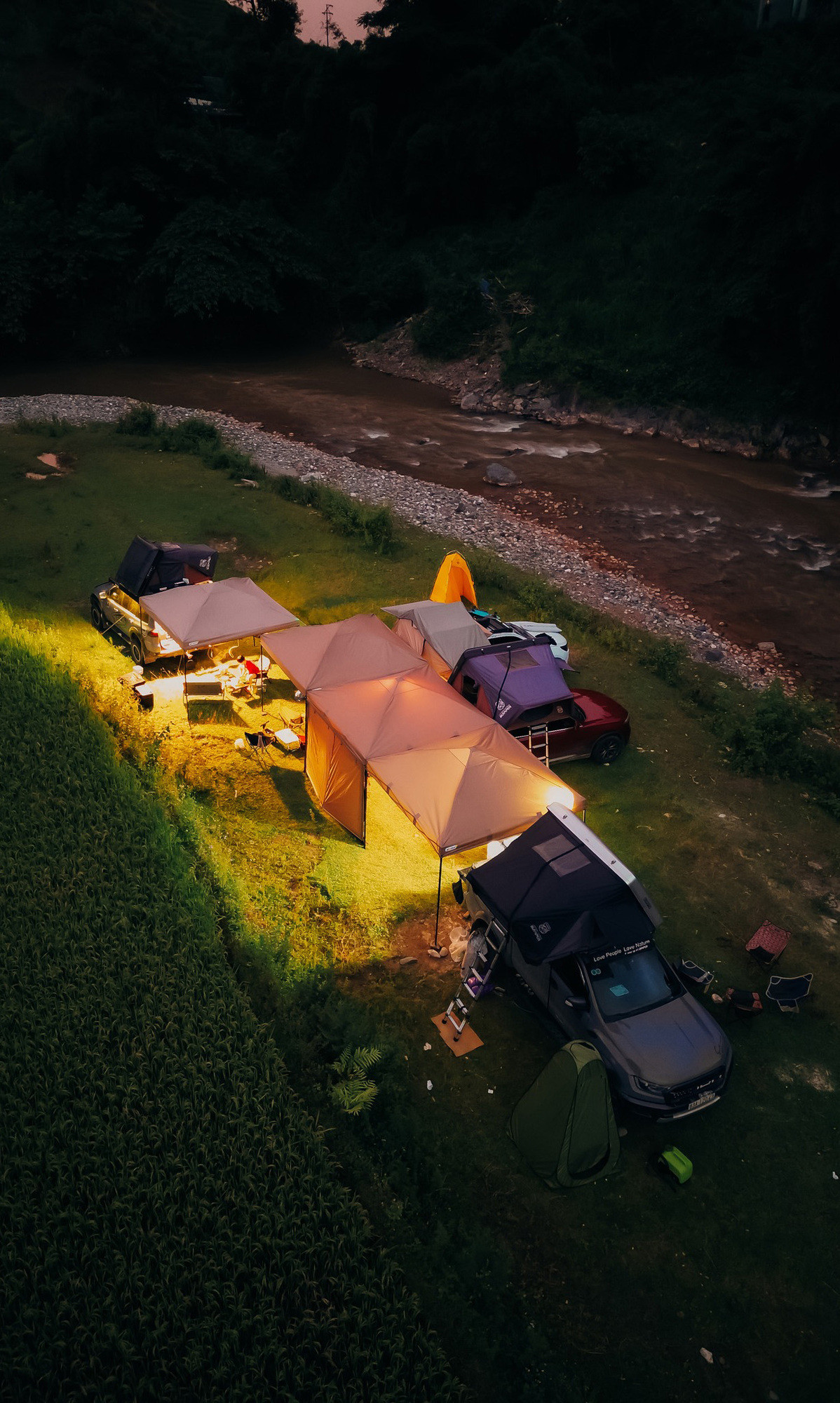 Trên xe, vợ chồng anh Minh đã trang bị sẵn các món đồ cần thiết như lều nóc gắn trực tiếp trên nóc xe, lều quây nhà vệ sinh di động, bếp và đồ dùng nấu ăn. Ngoài ra, anh Minh cũng trang bị thêm thiết bị dự trữ điện, nước, một số dụng cụ sửa chữa để xử lý khi gặp sự cố.