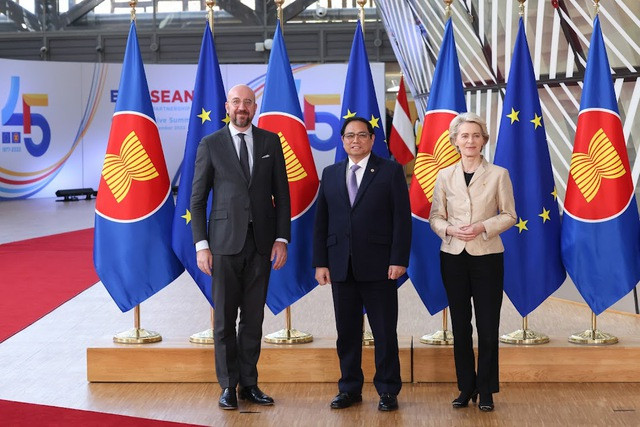 Tại hội nghị cấp cao kỷ niệm 45 năm ASEAN-EU ngày 14/12, các nước Nhóm các nước công nghiệp hàng đầu thế giới (G7) và các đối tác quốc tế khác thiết lập quan hệ Đối tác Chuyển đổi năng lượng không bằng (JETP), trong đó có gói 15,5 tỷ USD hỗ trợ Việt Nam trong quá trình chuyển đổi xanh.