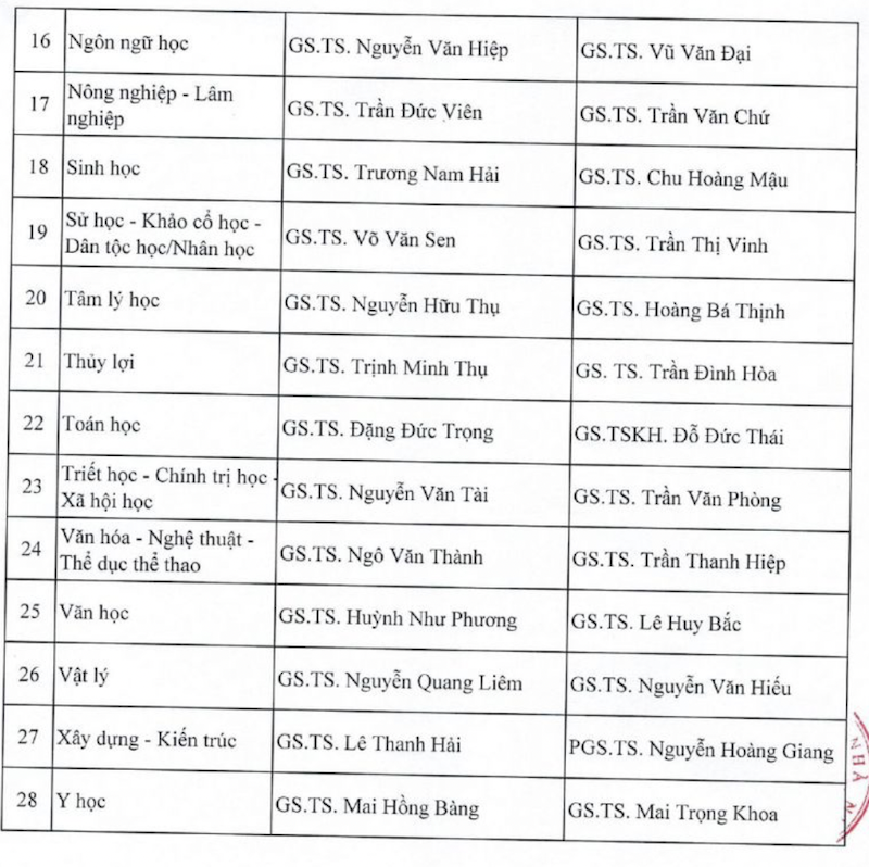 16. Hội đồng Giáo sư ngành Sinh học: 25 ứng viên.