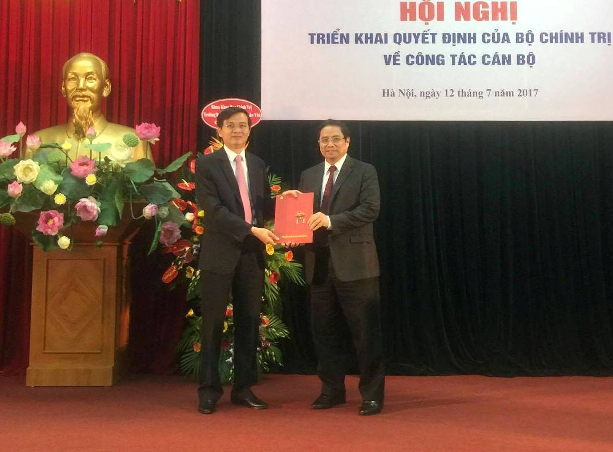 Ông Hoàng Trọng Hưng, Chánh văn phòng Ban Tổ chức Trung ương công bố quyết định của Bộ Chính trị về việc phân công, bổ nhiệm ông Đoàn Minh Huấn, Phó tổng biên tập tạp chí Cộng sản giữ chức tổng biên tập tạp chí Cộng sản.