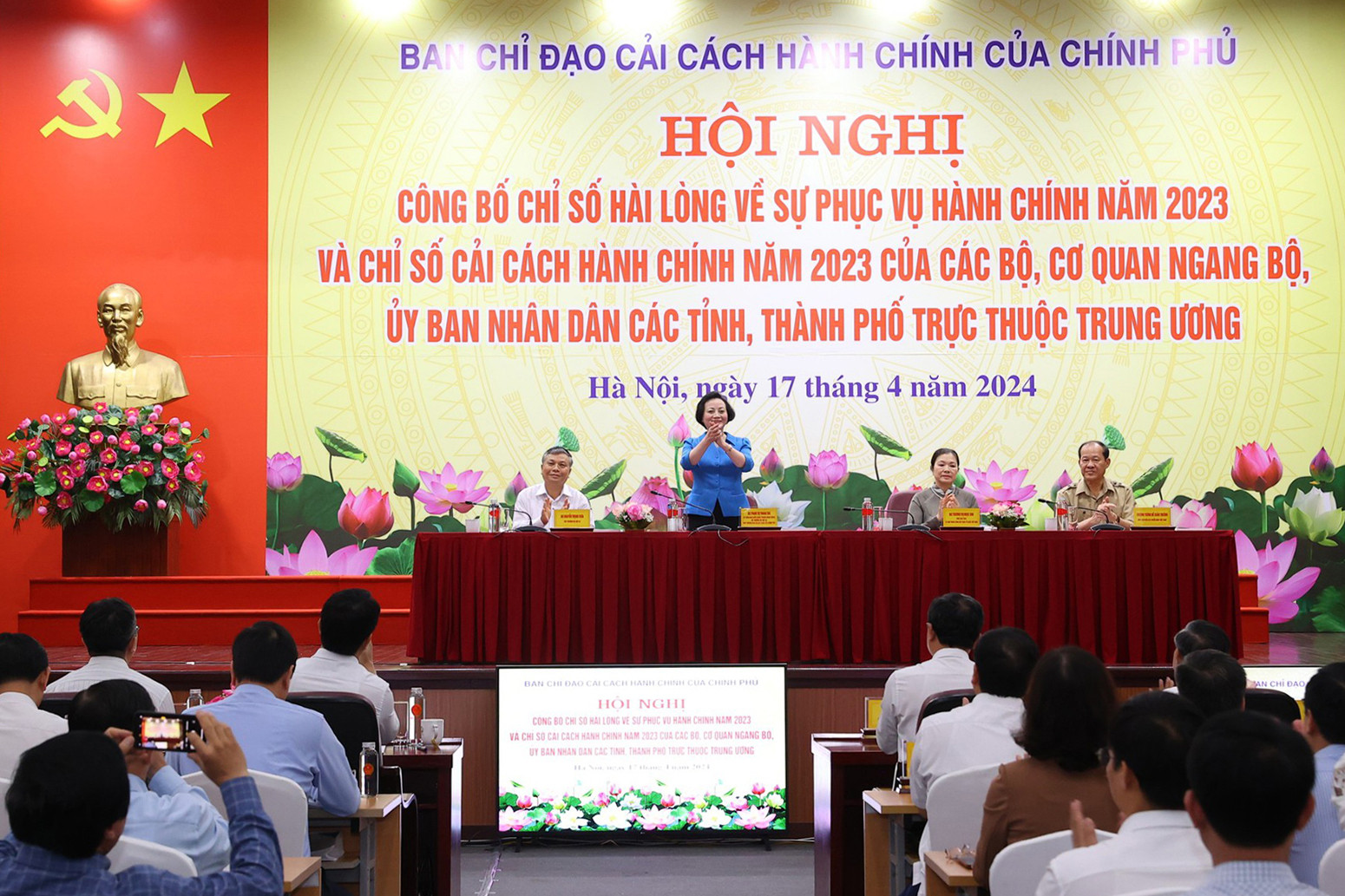 Tại phiên họp Chính phủ thường kỳ tháng 3 diễn ra trực tuyến sáng nay (6/4), Bộ trưởng Bộ Nội vụ Phạm Thị Thanh Trà báo cáo kết quả, xếp hạng Chỉ số hài lòng của người dân đối với sự phục vụ của cơ quan hành chính nhà nước năm 2024 và Chỉ số cải cách hành chính năm 2024 của UBND các tỉnh, thành phố trực thuộc Trung ương.