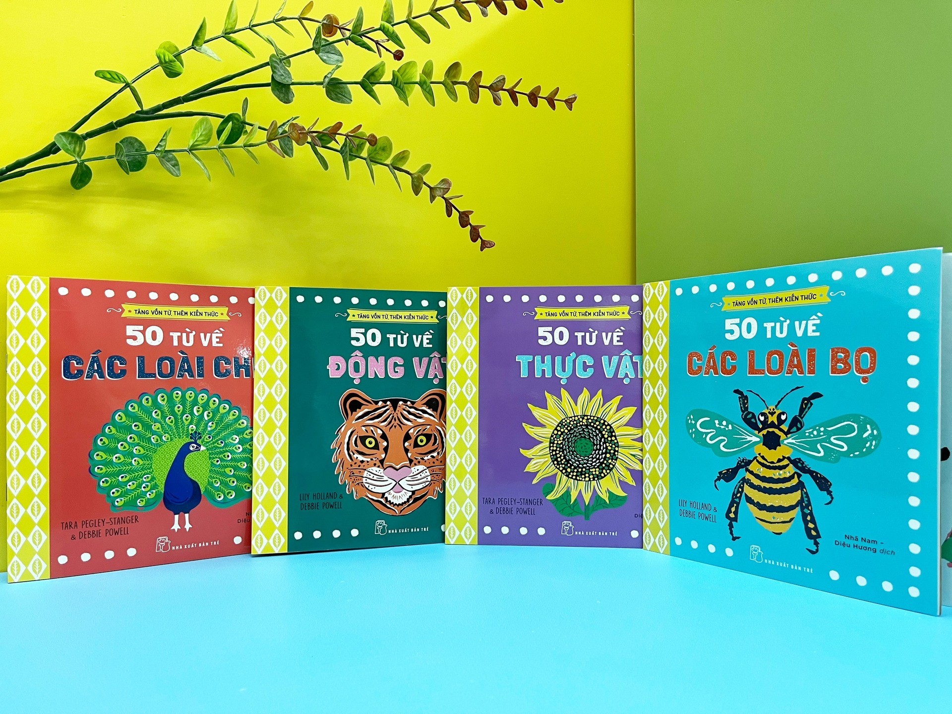 Bộ sách Tăng vốn từ, thêm kiến thức của NXB Trẻ được viết theo hình thức kể trên dành cho các bé từ 3 tuổi trở lên, gồm 4 tựa: 50 từ về động vật, 50 từ về thực vật, 50 từ về các loài chim, 50 từ về các loài bọ.