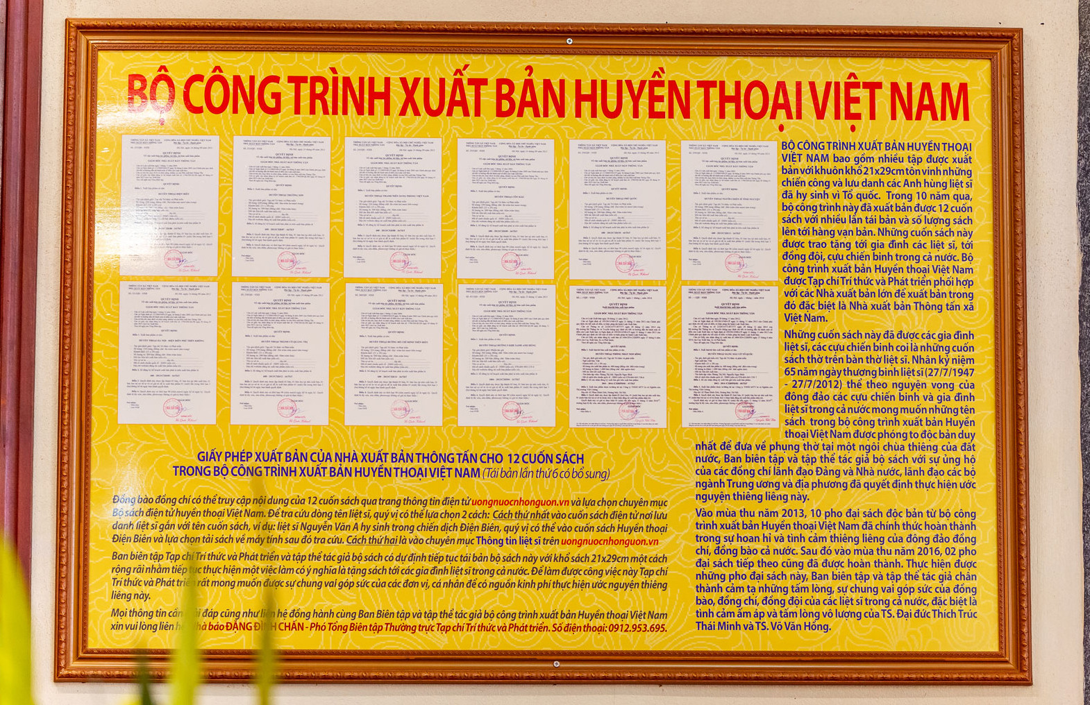 Năm 2014, nhà báo Đoàn Mạnh Phương cùng đồng nghiệp hoàn thành bộ sách Huyền thoại Việt Nam để lưu danh sự hy sinh cao cả của các anh hùng liệt sĩ đã ngã xuống vì độc lập, tự do của dân tộc. Sau lời thỉnh cầu của nhà báo Đoàn Mạnh Phương, đại đức Thích Trúc Thái Minh của chùa Ba Vàng đã bố trí toàn bộ khu tầng 1 nhà thờ Tổ làm nơi thờ phụng 10 pho đại sách (2 pho đại sách còn lại được bổ sung sau này).