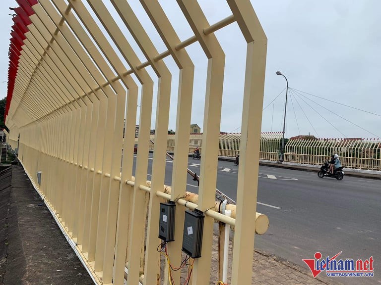 Cụ thể, quá trình trang trí cải tạo, hai bên lan can cầu Đại An được đơn vị thi công dựng hàng trăm thanh inox sơn màu vàng nhạt, đầu thanh inox sơn màu đỏ trông tựa que diêm bị gãy.