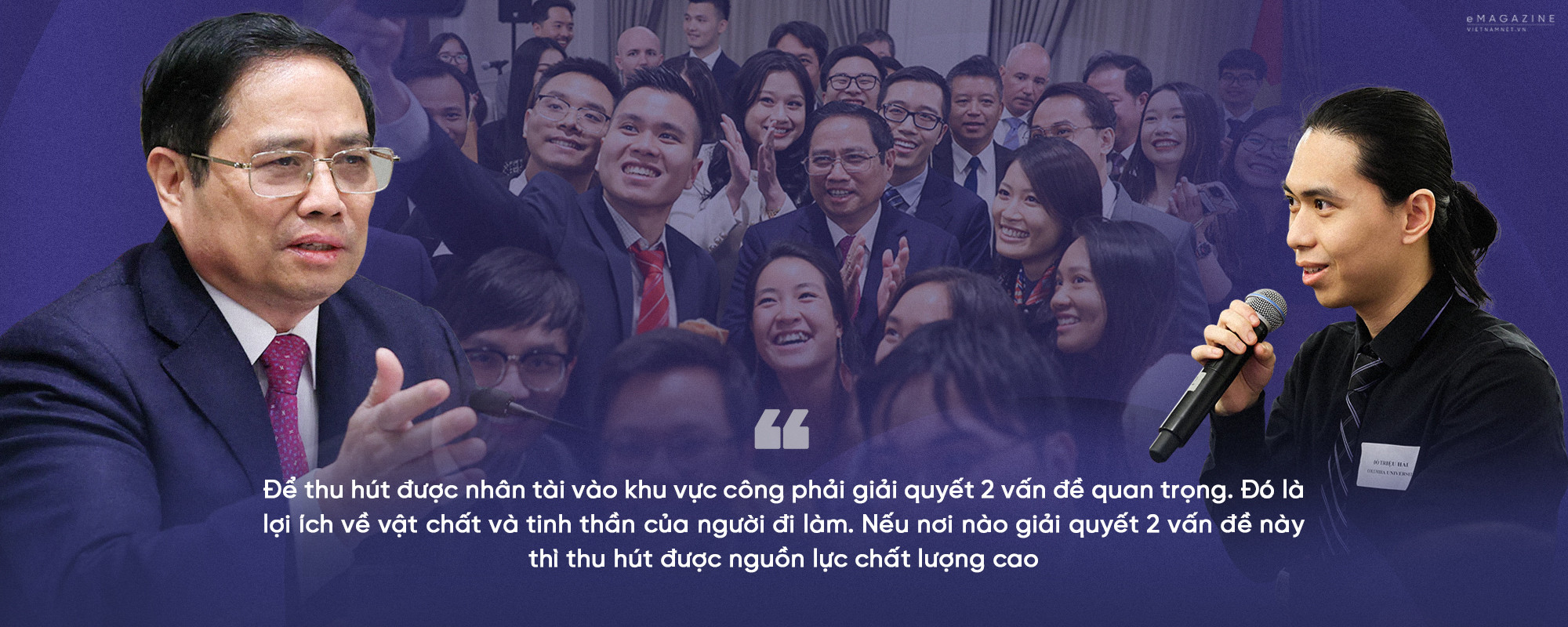 Như Thủ tướng Phạm Minh Chính đã trả lời các trí thức, thanh niên, sinh viên người Việt Nam tại New York trong chuyến công du đến Mỹ vào tháng 5/2022: “Để thu hút được nhân tài vào khu vực công phải giải quyết 2 vấn đề quan trọng. Đó là lợi ích về vật chất và tinh thần của người đi làm. Nếu nơi nào giải quyết 2 vấn đề này thì thu hút được nguồn lực chất lượng cao”.