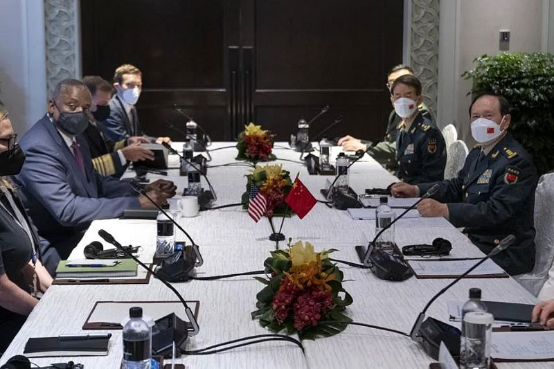 Theo báo Strait Times, cuộc tiếp xúc rất được mong chờ giữa Bộ trưởng Quốc phòng Mỹ Lloyd Austin và người đồng cấp Trung Quốc Ngụy Phượng Hòa kéo dài một giờ đồng hồ hôm 10/6, gấp đôi thời gian dự kiến. Kể từ khi Tổng thống Mỹ Joe Biden lên nắm quyền ở Nhà Trắng, hai quan chức đã có cuộc điện đàm đầu tiên hồi tháng 4.