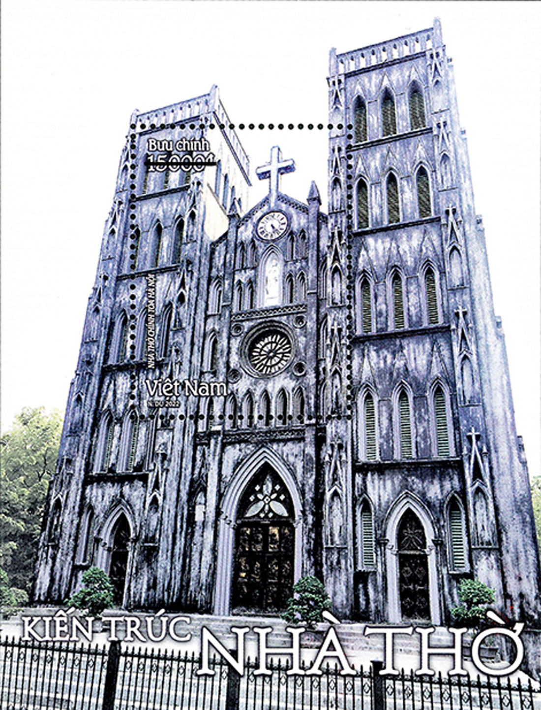 Bộ tem “Kiến trúc nhà thờ” giới thiệu một số nhà thờ tiêu biểu của Việt Nam: Nhà thờ chính tòa Phát Diệm (Ninh Bình), Nhà thờ chính tòa Đà Nẵng, Nhà thờ Mặc Bắc (Trà Vinh), Nhà thờ chính tòa Kon Tum, Nhà thờ chính tòa Hà Nội.