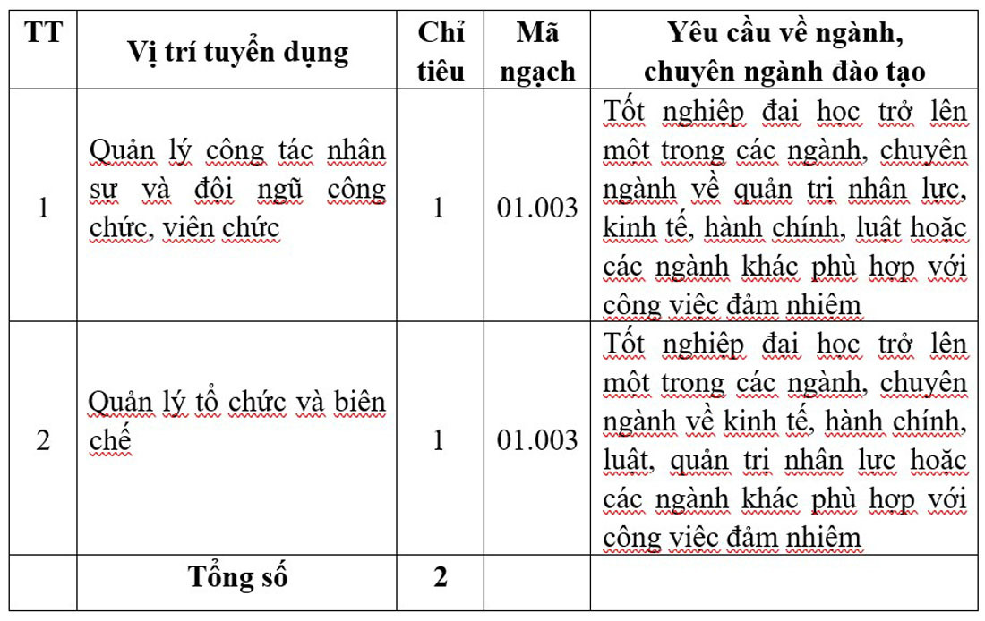 Vị trí, chỉ tiêu, yêu cầu về chuyên ngành đào tạo