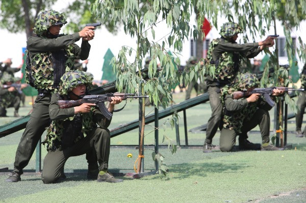 Tân binh Cảnh sát cơ động thao diễn nổ súng bắt đối tượng buôn ma túy