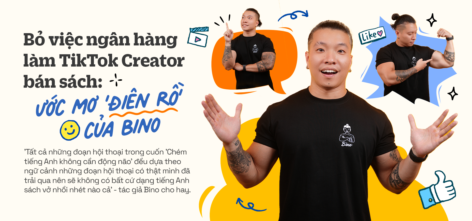 “Bảo bối” của Bino là cuốn Chém tiếng Anh không cần động não (Nhà xuất bản Thế giới), phân phối qua Zenbooks và đồng hành cùng TikTok trong dự án #BookTok vào tháng 4/2024.