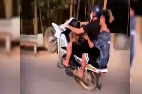 Bức xúc cảnh 2 thanh niên không mũ bảo hiểm, bốc đầu xe máy