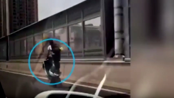 Hình ảnh một thanh niên bốc đầu xe máy trên cao tốc ở Trung Quốc khiến những người tham gia giao thông vô cùng hoảng hốt.