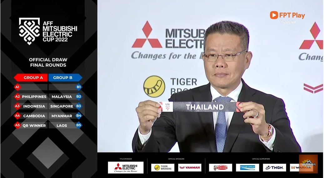 Chủ tịch Liên đoàn bóng đá Thái Lan bốc thăm cho hai đội thuộc nhóm 1: Thái Lan rơi vào bảng A, trong khi Việt Nam nằm ở bảng B.