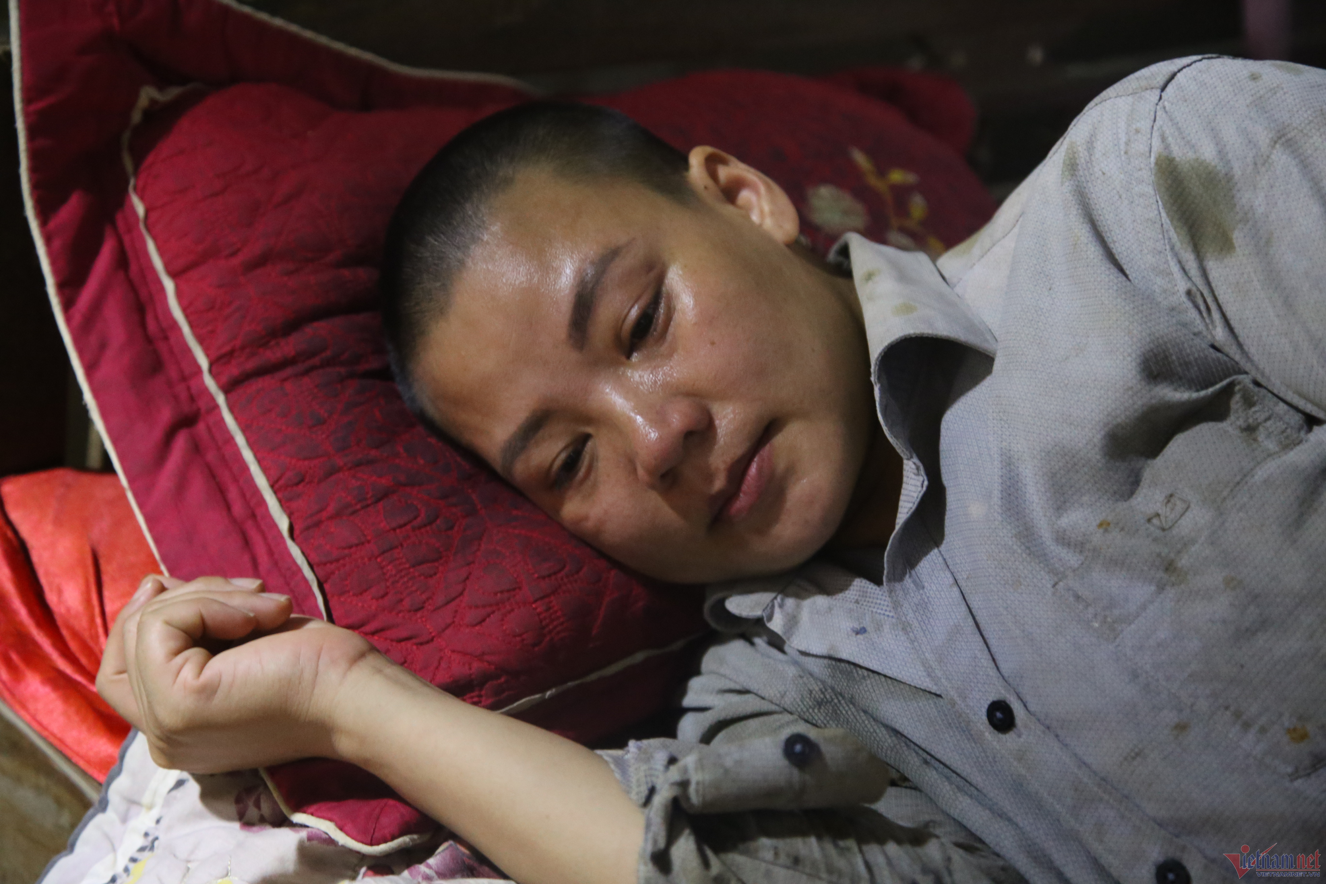 Bệnh trở nặng, chị phải làm hoá trị. Hai vợ chồng dắt díu nhau ra Hà Nội, để 4 đứa trẻ ở nhà chăm sóc, tự bảo ban nhau. Mỗi lần "vào thuốc", chị đau đớn quằn quại. Mái tóc dày đen nhánh cũng rụng dần.