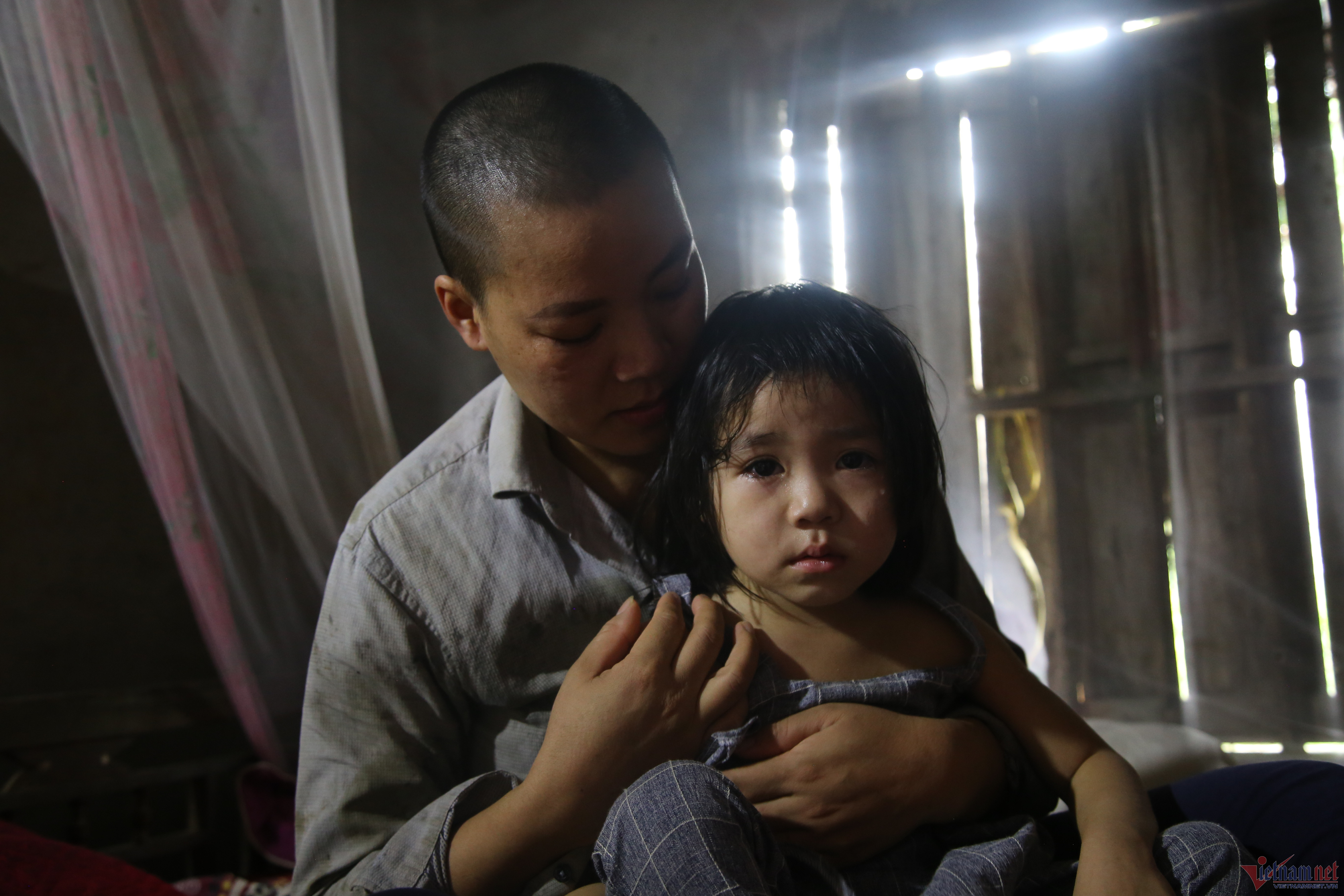 Trong túp nhà nhỏ dựng tạm ở triền núi, giữa cái nắng nóng miền Trung "như thiêu như đốt", chị Nhường mệt mỏi nằm lả trên giường bệnh. Xung quanh là 4 đứa con mắt đỏ hoe, nhìn mẹ đau đớn vừa trải qua hai đợt hóa trị. "Mẹ ơi! Con sợ mẹ đi mất" - câu nói của bé trai Trần Văn Khánh Phương mới 5 tuổi như mũi kim châm vào lòng người nghe, đau nhói.