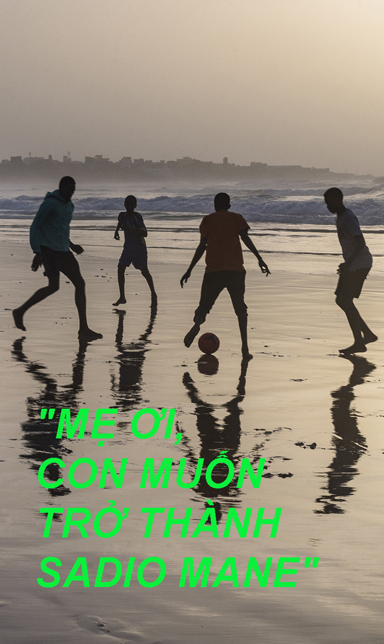 Mặt trời bắt đầu buông xuống. Thủy triều xuống để lộ hàng km cát ướt trên bãi biển rộng lớn nối Guediawaye với thủ đô. Trong nháy mắt, một nhóm thanh niên chiếm hết chỗ trống trong các bữa tiệc bóng đá ngẫu hứng. Bóng đá, ở châu Phi, có mặt khắp nơi. Và những cầu thủ thành công ở các CLB châu Âu, những người hùng thực sự bằng xương bằng thịt, sống trong sự thèm khát của lũ trẻ.