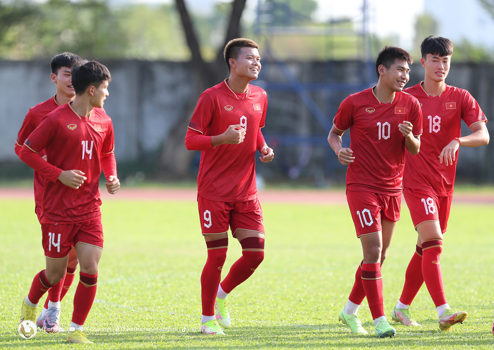 Chiều 6/5, U22 Việt Nam trở lại tập luyện sau 2 ngày nghỉ. HLV Philippe Troussier trực tiếp ra chuẩn bị dụng cụ cho các cầu thủ tập luyện.Tuyển U22 Việt Nam đến sân tập muộn 30 phút do HLV Philippe Troussier yêu cầu các cầu thủ khởi động trước ở khách sạn.Vì thế, Văn Đô cùng các đồng đội bước vào tập luyện ngay khi ra sân.U22 Việt Nam có tinh thần rất thoải mai sau 2 trận toàn thắng.Văn Tùng ghi bàn đều đặn cho U22 Việt Nam, trở thành chân sút chủ lực trong chiến dịch bảo vệ HCV SEA Games của đội bóng áo đỏ.Trước khi bước vào bài tập chiến thuật, HLV Philippe Troussier nhắc nhở các cầu thủ cần có sự tập trung cao nhất, đồng thời tiếp tục cho các học trò ôn luyện kỹ bài tủ.U22 Việt Nam vẫn chơi kiểm soát bóng, pressing tầm cao ở trận gặp Malaysia.Để có thể vận hành được lối chơi này, các cầu thủ phải có nền tảng thể lực tốt.Bên cạnh đó là sự phối hợp ăn ý.Văn Khang cùng các đồng đội có 2 buổi tập trước trận gặp Malaysia.Tuyển U22 Việt Nam tự tin hướng tới trận thắng tiếp theo, qua có cơ hội lớn vào bán kết SEA Games 32.