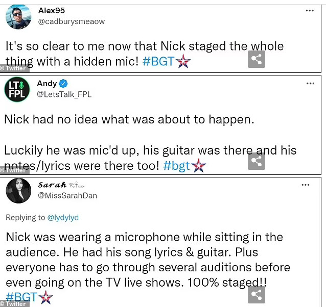 Tuy nhiên Britain's Got Talent khẳng định Nick là khán giả đã được chương trình chọn trước đó với tư cách là một phần của chiếc hộp bật mí nên anh được cài sẵn mic trên áo nhằm ghi lại phản ứng trực tiếp của khán giả bên dưới.