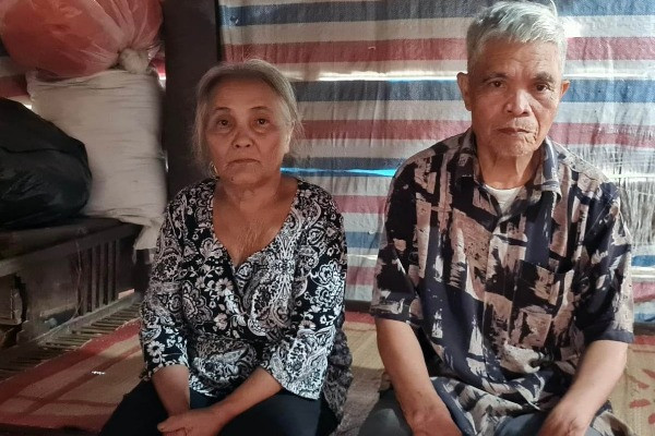 Cách đây mấy năm có bão lớn, ông bà phải sang nhờ các con. Cả nhà trú tạm dưới mất tấm ván tránh bão. Đến lúc về, mái nhà đã bị lật tung, chính quyền xã và bà con họ hàng hỗ trợ giúp lợp lại, nhưng chỉ được một thời gian cũng xuống cấp.