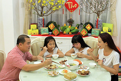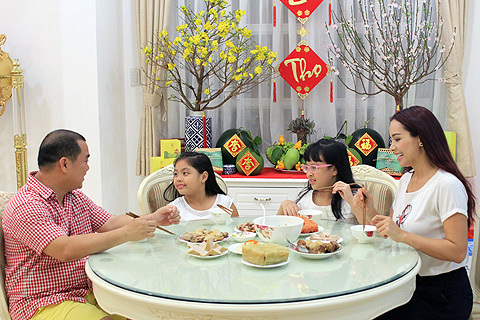 Như mọi năm, dù bận rộn đến mấy, thế nhưng gia đình nhỏ của Minh Khang - Thúy Hạnh vẫn không thể thiếu bữa cơm tất niên.![]() Bữa cơm dù không quá cầu kỳ, nhưng vẫn đủ đầy những món ăn quen thuộc của dịp Tết hai miền như bánh chưng hay thịt kho... ![]() Hai cô bé Suti và Suli nay đã lớn, đều rất chịu khó vào bếp phụ mẹ bê dọn đồ ![]() Trong khi cô chị Suli khéo léo đổ nồi thịt kho ra bát trong sự hướng dẫn của mẹ. ![]() Thi cô em Suti lại cẩn thận bưng đĩa bánh chưng lên bàn ăn. ![]() Sau đó, cả hai còn giúp ba mẹ dọn chén đũa ra bàn. ![]() Bên mâm cơm tất niên, cả nhà cùng nhau vui vẻ ôn lại những kỷ niệm đẹp của một năm đã qua. ![]() Đó là những chuyến hành trình thú vị của ba Minh Khang và cô em Suti khi tham gia Bố ơi mình đi đâu thế. ![]() Là câu chuyện về sự trưởng thành từng ngày của cô chị Suli. ![]() Đặc biệt hơn cả, Tết năm nay sẽ là cái Tết đầu tiên của cả gia đình trong căn nhà mới khang trang và rộng rãi. ![]() Được biết, gia đình nhỏ hạnh phúc này vừa chuyển về ngôi nhà mới ở quận 9 được vẻn vẹn 5 tháng. ![]() Chia sẻ về kế hoạch đón Tết năm nay, Thúy Hạnh cho biết cả nhà sẽ ở nhà và đi chơi loanh quanh trong thành phố thôi. Lý do là vì dù đã đặt được phòng tại Phú Quốc, thế nhưng chị lại không mua được vé cho gia đình. |