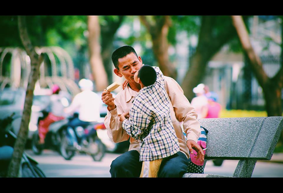 Anh Phạm Anh Tuấn, người ghi lại những khoảnh khắc tuyệt vời của hai cha con chia sẻ: “Vô tình bắt được khoảnh khắc của 2 cha con. Chụp xong mà thấy hơi chạnh lòng. Lại nhớ tới ông chú làm công an quen ngoài hàng nhậu. Với câu chuyện và một cái nhìn lý giải khác về những đứa trẻ không may mắn.
