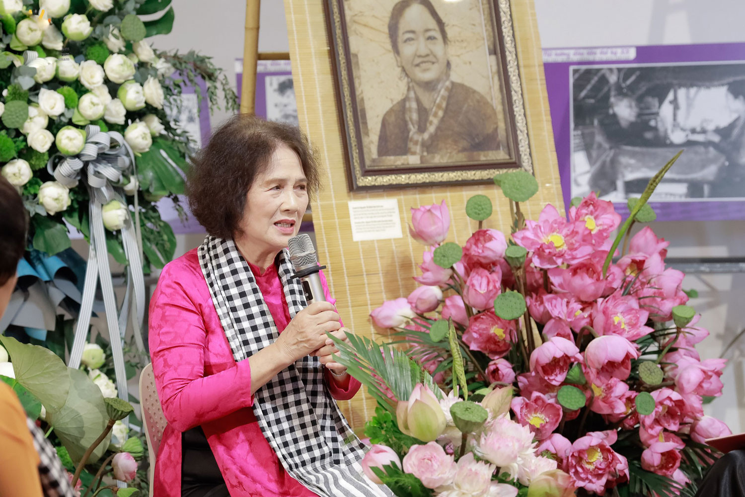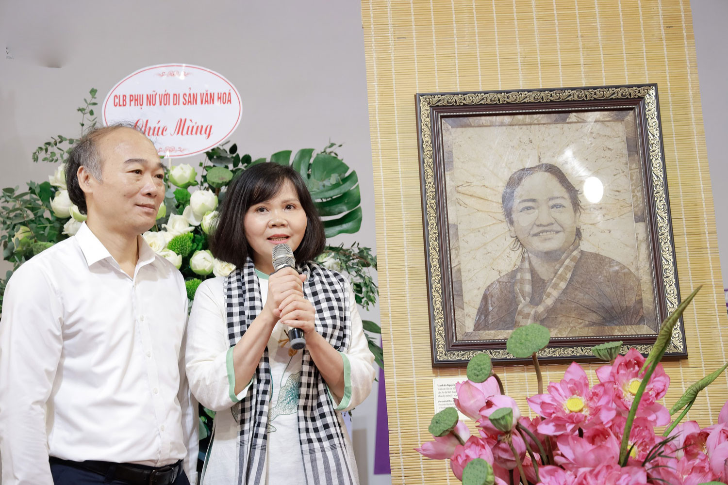 “Khi nhận về bức tranh làm từ lá sen, tôi vô cùng xúc động, đặc biệt khi tác phẩm đã lột tả được thần thái của một nữ tướng, mạnh mẽ mà vô cùng nhân hậu”, bà Nguyễn Thị Thanh Tâm nhấn mạnh.