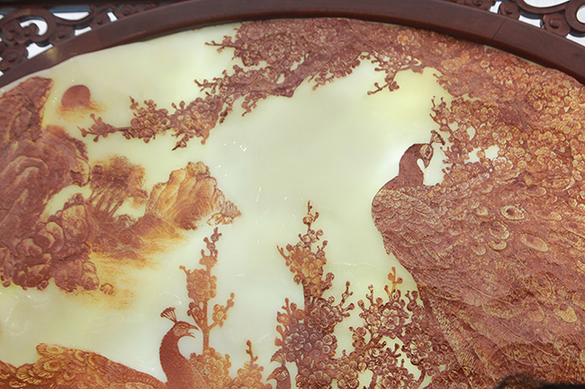 Tại Festival cây cảnh, đá quý tỉnh Thanh Hóa 2019, bức tranh “Vinh hoa phú quý” nguyên khối bằng ngọc cẩm thạch gây sự chú ý với người dân và du khách