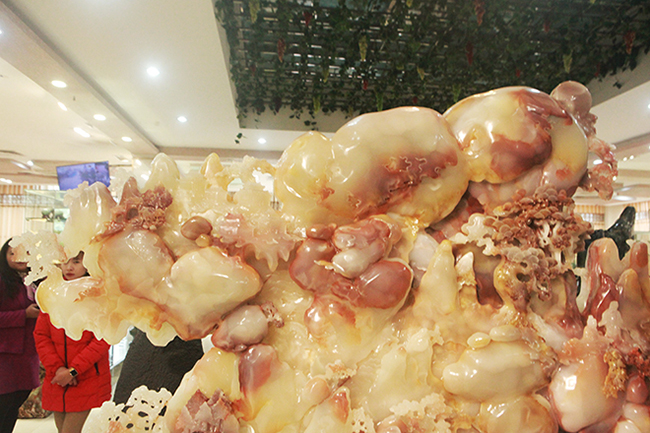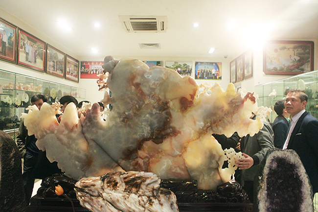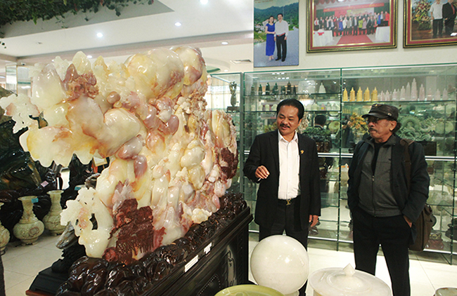 Nhiều vị khách phải sờ tận tay để cảm nhận chất ngọc và những vết chạm khắc tinh xảo