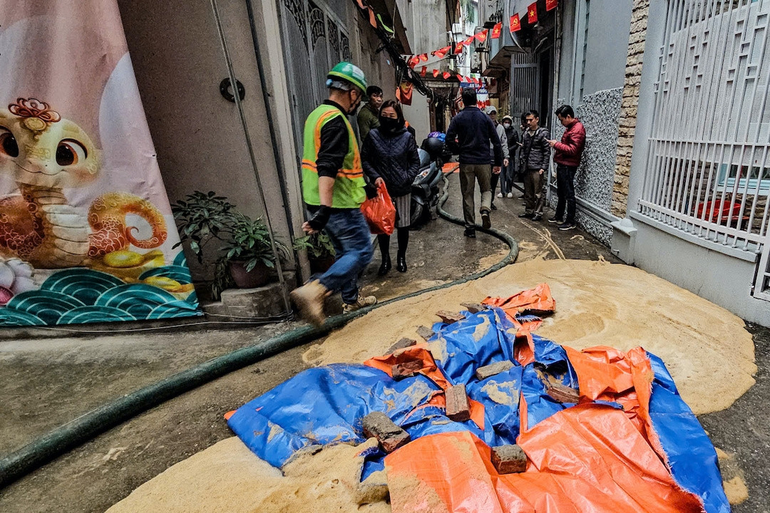 Trước đó, khoảng 15h ngày 20/2, người dân trong ngõ 7 phố Giang Văn Minh phát hiện nhiều bùn đất trào lên từ các miệng cống thoát nước nên đã báo cơ quan chức năng.