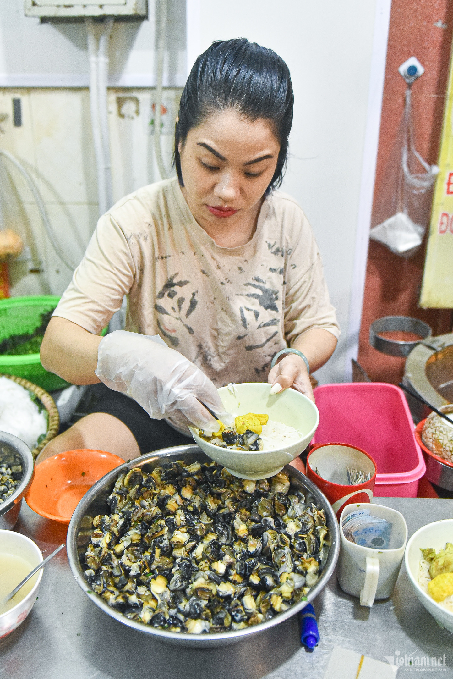 Quán mở cửa từ 7h30 đến 17h30, trong đó từ 11 - 13 giờ là thời gian cao điểm nhất. Lúc này, 6 nhân viên của quán làm việc luôn chân tay mới kịp nhận đơn, bưng bê, dọn dẹp.