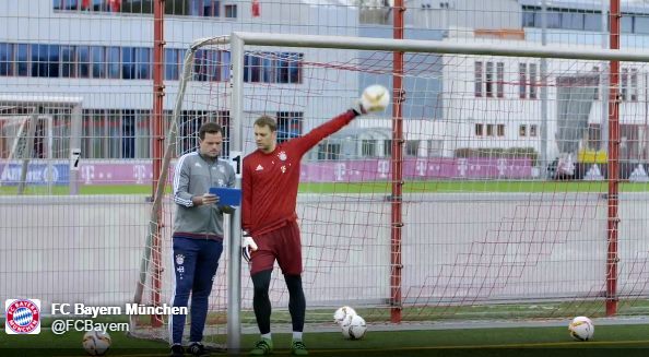 Thủ thành người Đức khiến fan hâm mộ phải ngỡ ngàng với tình huống cản phá bóng không cần nhìn trong buổi tập của Bayern Munich trước trận tiếp Juventus.