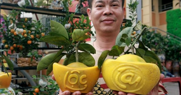 Năm nay, lần đầu tiên một nghệ nhân ở Hưng Yên giới thiệu tại Hà Nội bưởi Diễn hình thỏi vàng, tạo chữ Tài – Lộc rất bắt mắt, phục vụ nhu cầu chơi Tết Nguyên đán 2020.