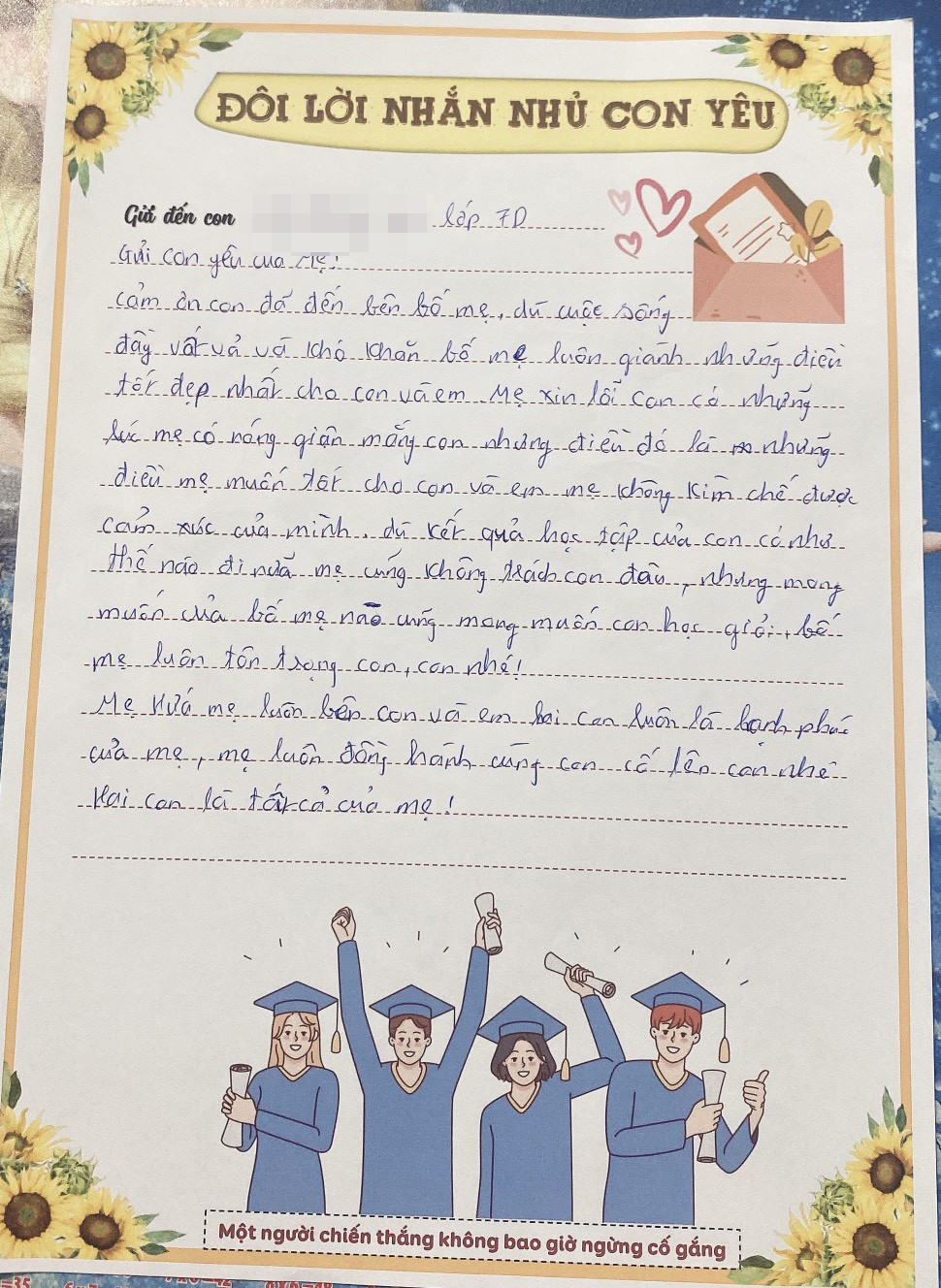 Dưới đây là một số nhắn gửi của phụ huynh tới con:
