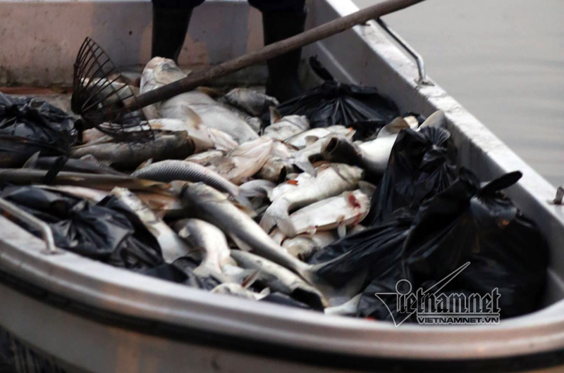 Trắng đêm vớt cá chết trên hồ Hoàng Cầu