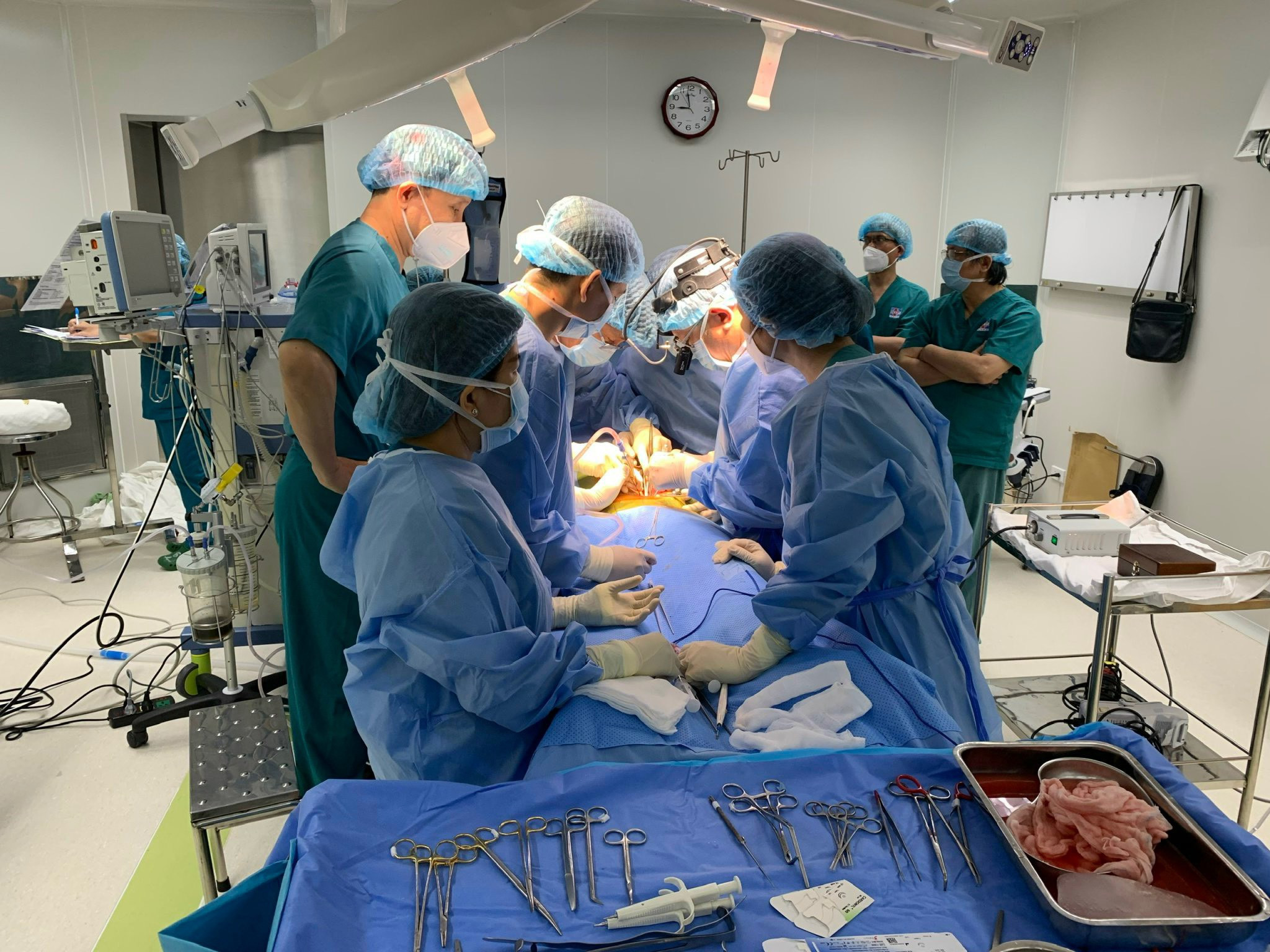 Song song với quá trình di chuyển của tim, tại Trung tâm Tim mạch – Bệnh viện Trung ương Huế, bệnh nhân nhận tim được đưa vào phòng mổ lúc 12h10 phút, rạch da lúc 13h, đặt và chạy tuần hoàn ngoài cơ thể lúc 13h45 phút.