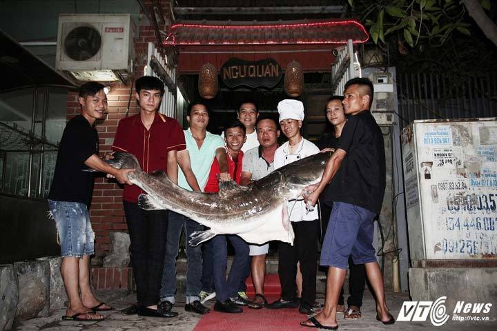 Tối 6/11, nhà hàng Ngư quán (Cầu Giấy, Hà Nội) đã "săn" được một con cá lăng đen "siêu khủng" dài 2 mét, nặng 70kg từ khu vực sông Mê Kông.