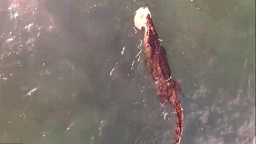 Đoạn video ghi lại cảnh săn mồi của con cá sấu xảo quyệt khi nó biết chọn đúng thời điểm để ra đòn hạ gục cá mập.
