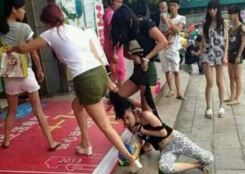Vợ lột quần áo 'tình địch' giữa đường, chồng sợ hãi bỏ chạy