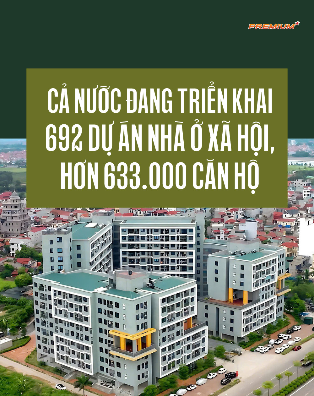 Cả nước đang triển khai 692 dự án nhà ở xã hội với hơn 633.000 căn hộ. Trong đó, 146 dự án hoàn thành, 124 dự án đã khởi công xây dựng, 422 dự án được chấp thuận chủ trương đầu tư.