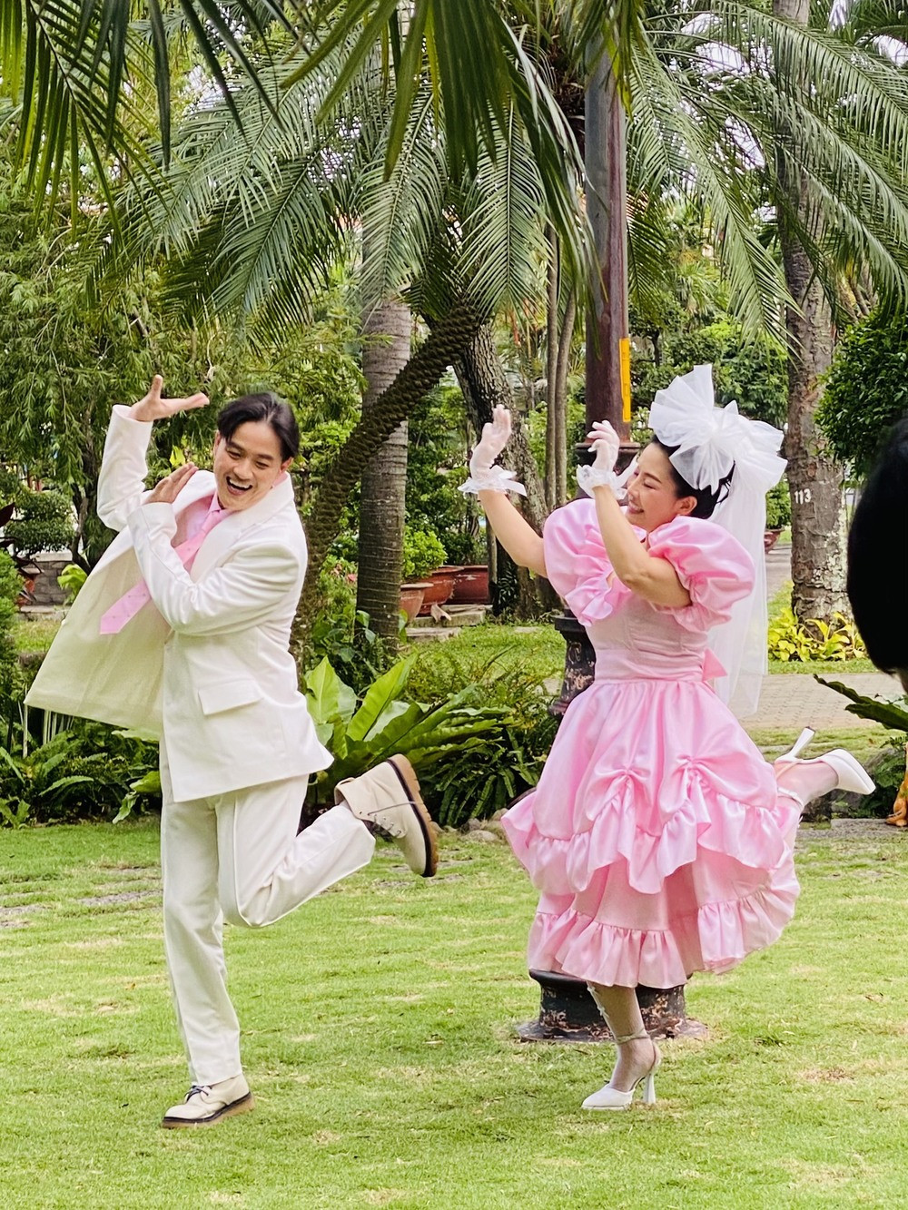Thanh Duy hạnh phúc khi được "cưới" thần tượng và hồi hộp khi qua chở Kiều Oanh đi thu âm. Anh chia sẻ thêm, nữ danh hài có tính cách vui vẻ hòa đồng khiến cho cả đoàn phim trở nên vui vẻ.