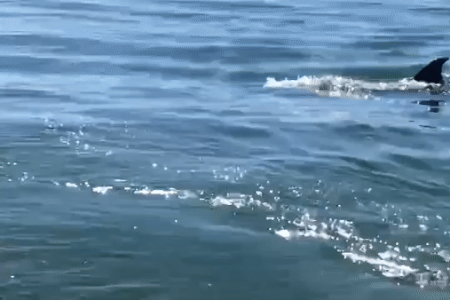 Con cá bất ngờ xuất hiện khoảng 10 phút, rồi rời đi. Anh chia sẻ, dù khoảng cách khá xa, song vẫn thấy rõ con cá voi có kích thước rất lớn. Trước cảnh tượng hiếm gặp này, anh Khương nhanh chóng dùng điện thoại ghi lại.