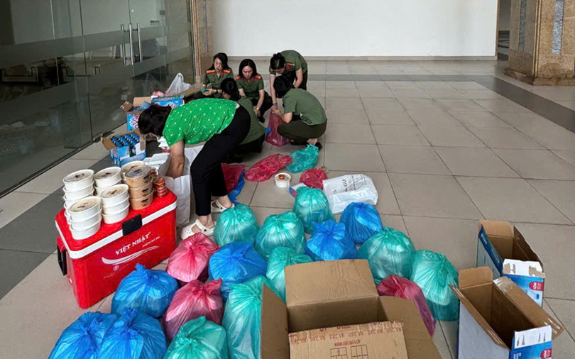 Để nấu ra hàng trăm suất cơm cứu trợ, Thùy Linh và nhóm bạn luôn chân luôn tay từ sáng đến khuya. Họ phân chia rõ ràng đầu việc cho từng người, người chuẩn bị thực phẩm, người đứng bếp, người đóng hàng, người liên hệ với các nhóm cứu trợ nhờ họ gửi cơm đến bà con vùng lũ.