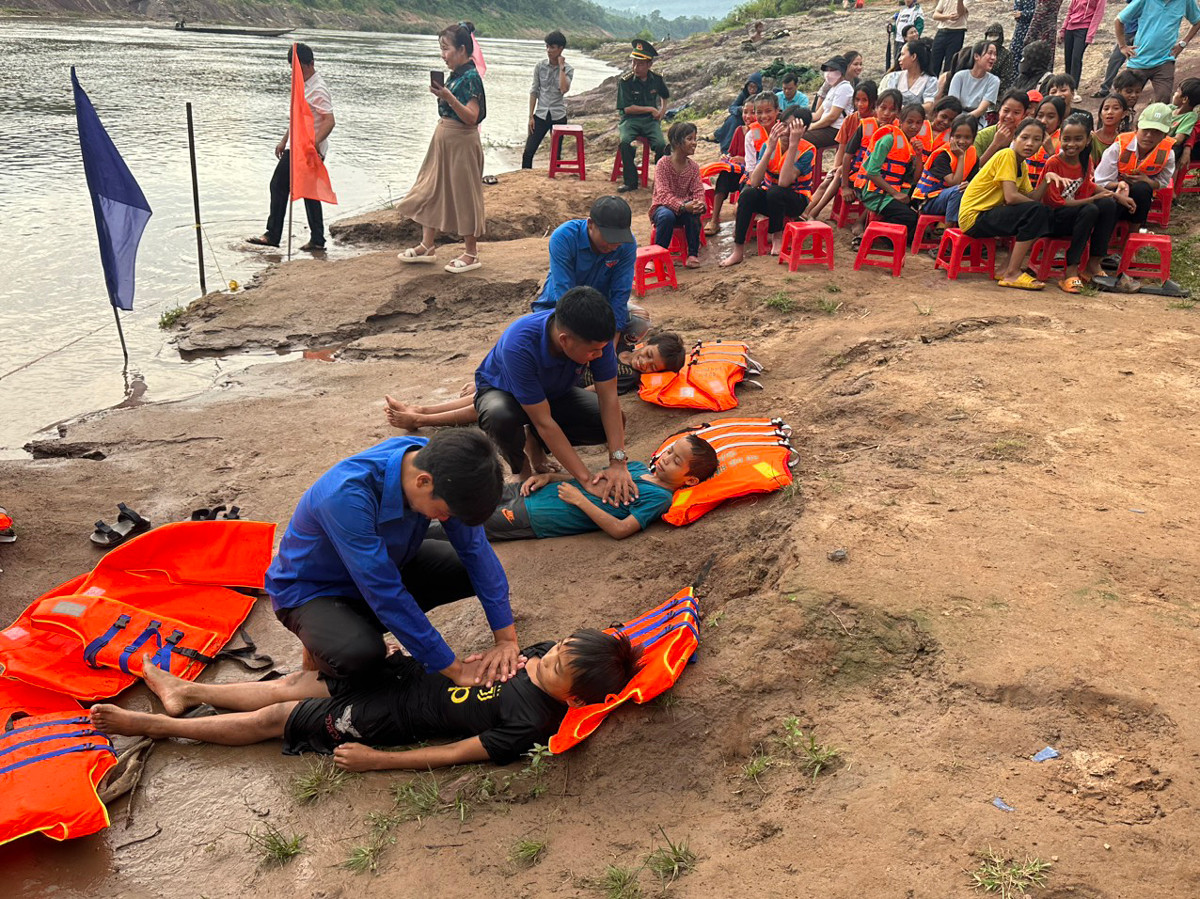 Trung tá Ngô Trường Khôi - Đồn trưởng Đồn biên phòng Thanh cho biết, Đồn đã tổ chức tập huấn kỹ năng phòng, tránh tai nạn đuối nước cho gần 100 em học sinh Trường TH&THCS Xy.