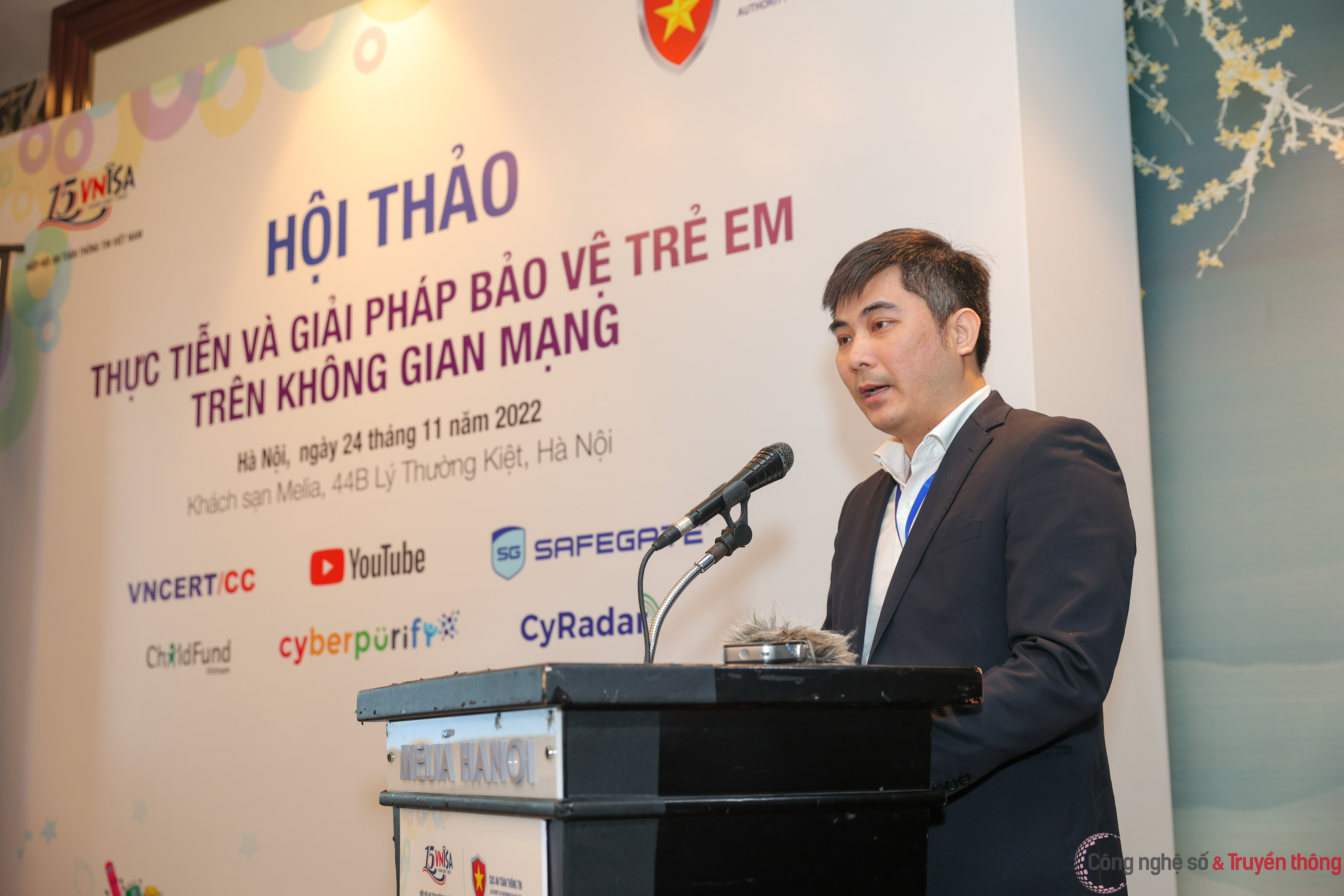 Cũng trong chương trình hội thảo, phiên tọa đàm có chủ đề “Vai trò và trách nhiệm của các bên trong Bảo vệ trẻ em trên không gian mạng” do ông Ngô Tuấn Anh, Phó Chủ tịch Hiệp hội An toàn thông tin Việt Nam chủ trì với sự tham gia của lãnh đạo Cục Trẻ em, VNCERT, Childfund Việt Nam và nhiều doanh nghiệp. Khách tham dự có cơ hội trải nghiệm quầy trình diễn sản phẩm bảo vệ trẻ em của YouTube, CyRadar, CyberPurify, SafeGate.