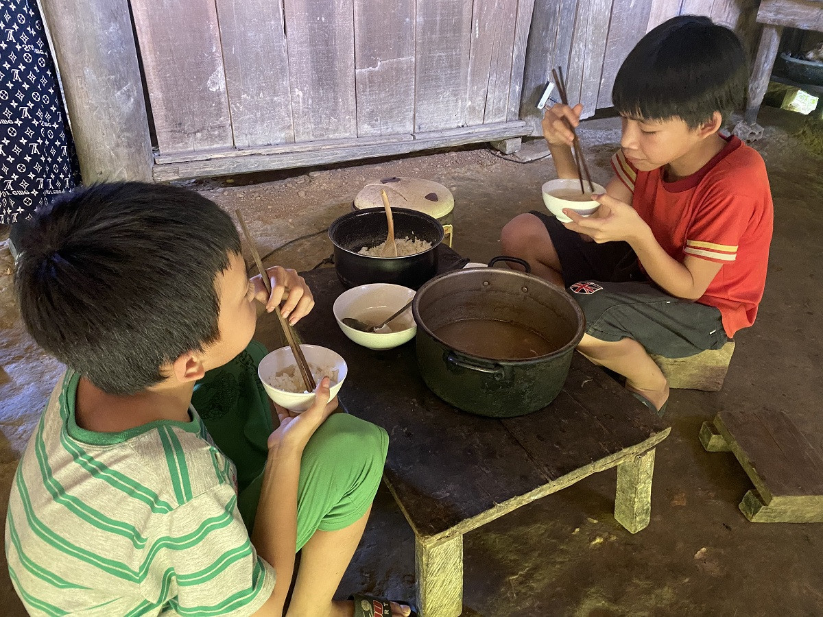 Trước kia, anh Bằng kiếm tiền chỉ đủ mua gạo, mắm muối, bữa ăn của mấy cha con chủ yếu là măng, rau rừng. Bọn trẻ không biết đến đường sữa, ăn uống thiếu thốn nên đứa nào cũng gầy gò, đặc biệt em Phú còn bị hen suyễn, thường xuyên đau ốm.