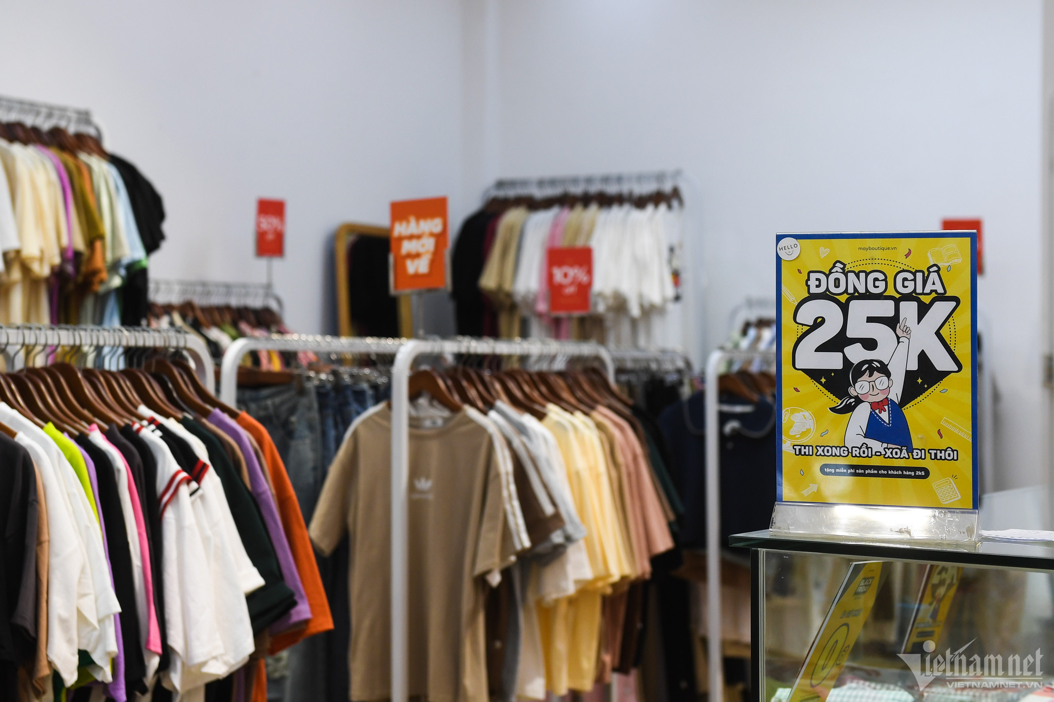 16h tại một cửa hàng trên đường Nguyễn Trãi, nhiều sản phẩm đồng giá 25K, giảm giá đến 60% nhưng vẫn vắng bóng khách. Quản lý tiệm cho biết thời gian gần đây, khách không mấy mặn mà với chương trình ưu đãi hấp dẫn. Cửa hàng vẫn duy trì cho 2 nhân viên làm việc/ca, nhưng phần lớn thời gian là ngồi không.
