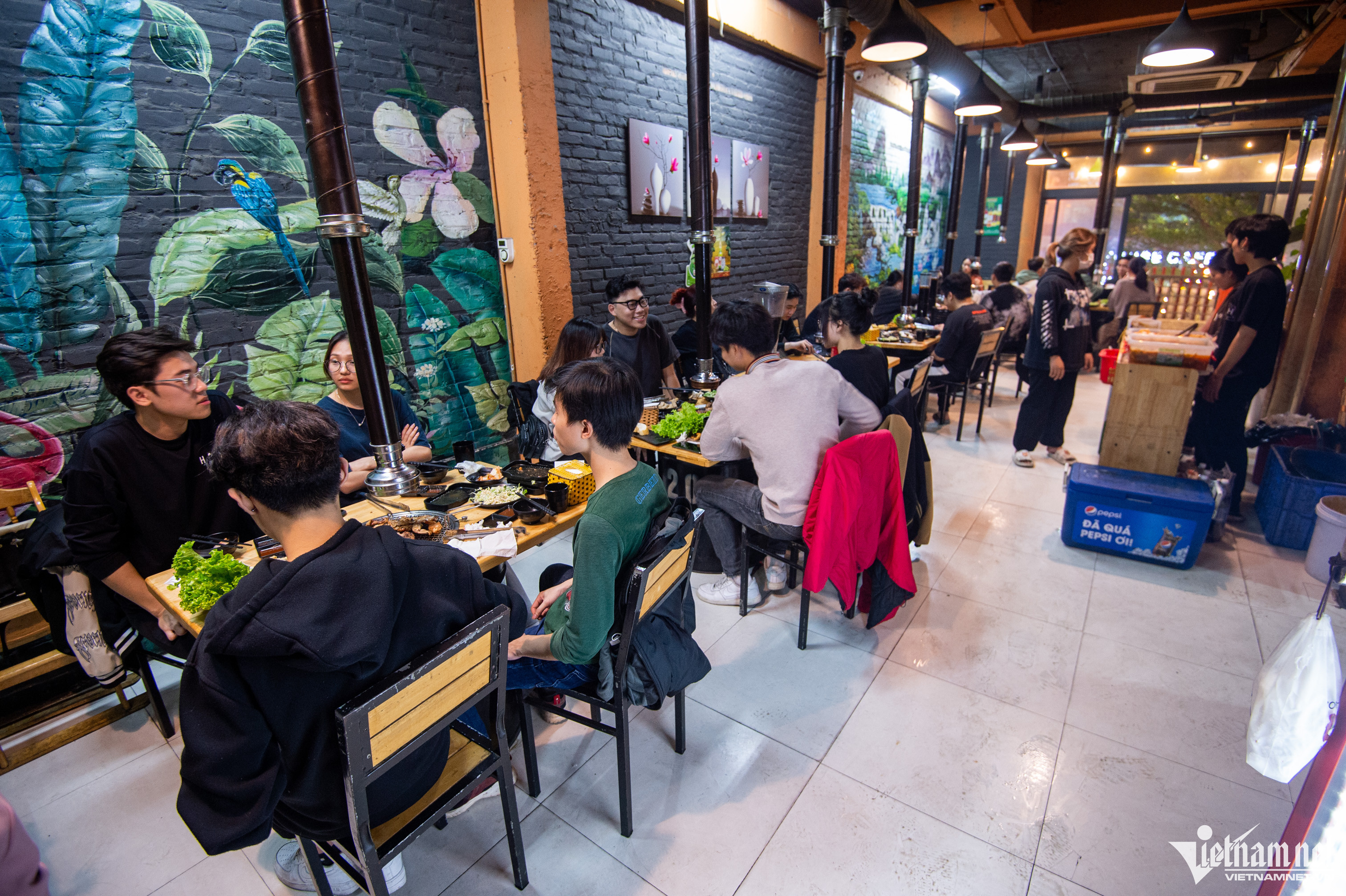 Do là tuyến phố ẩm thực, các hàng kinh doanh lẩu, món nướng thu hút rất đông khách, đặc biệt thời tiết Hà Nội đang ấm áp, thuận lợi cho nhiều hoạt động vui chơi.